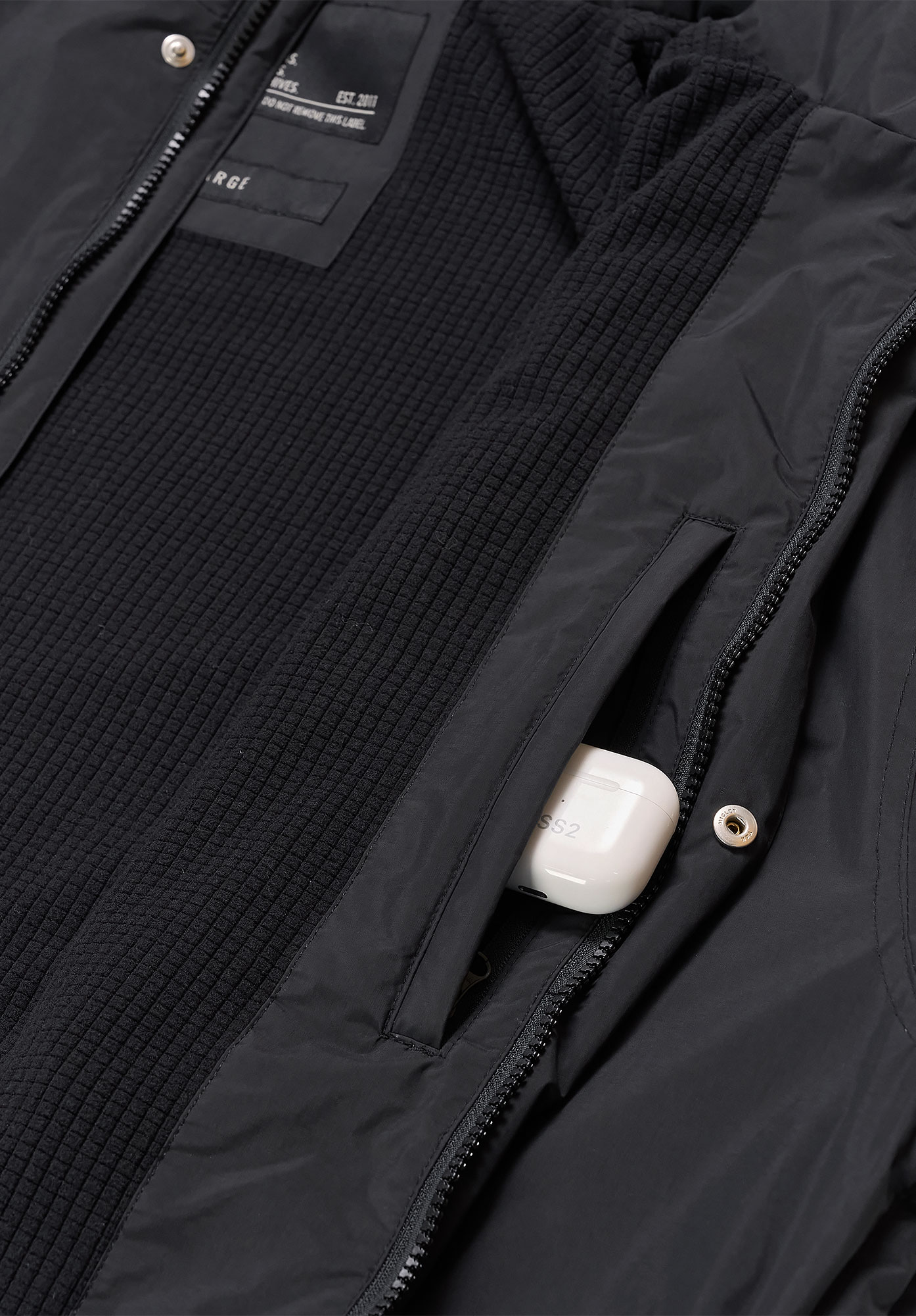 가슴의 톤온톤 고밀도 자수는 과하지 않은 브랜드 아이덴티티를 표현하며, 고급스러운 디테일을 완성합니다.
