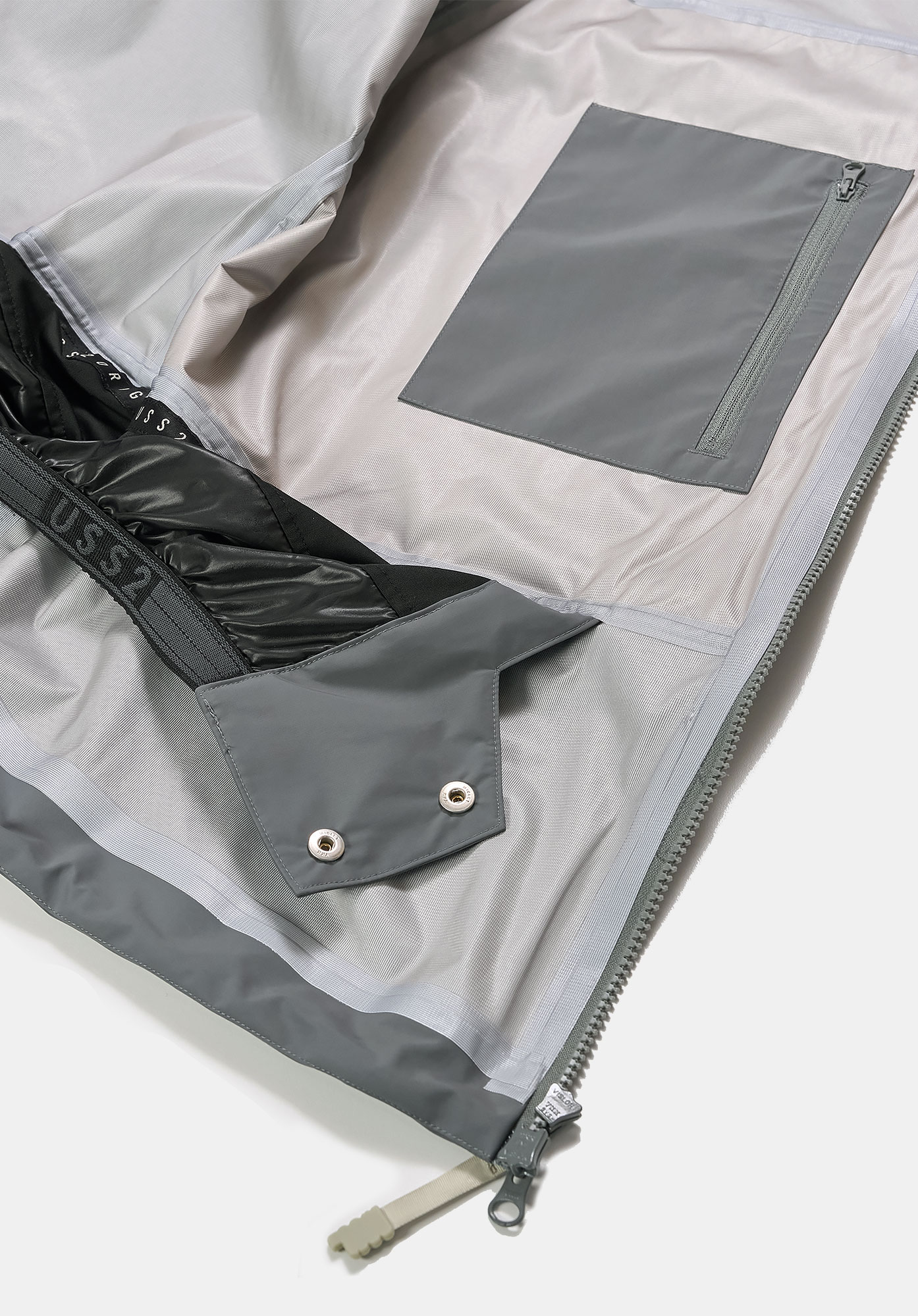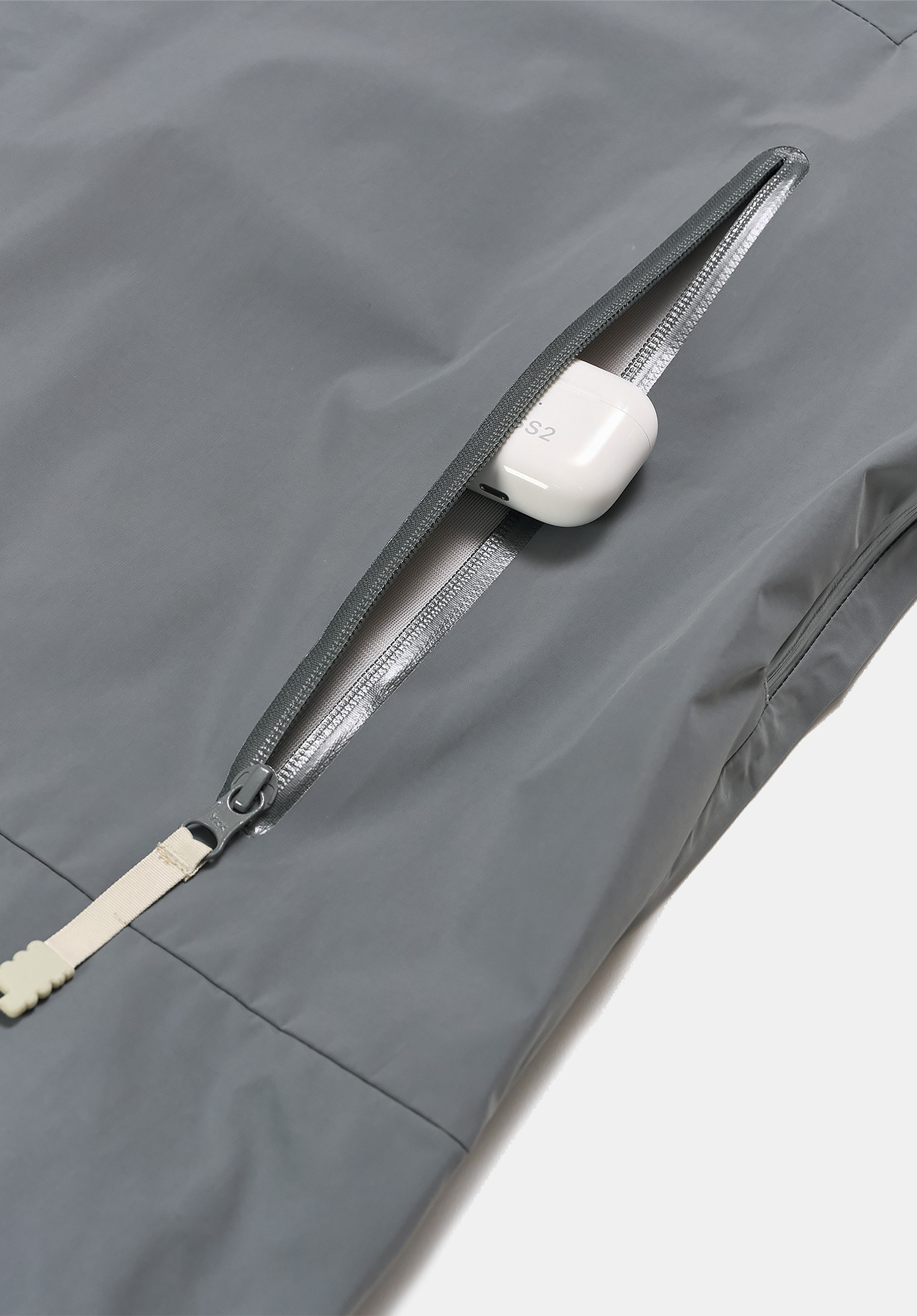 메인 부분에 적용된 YKK™ 2-way 방수 지퍼는 완벽한 방수성과 사용 편의성을 제공하며, 가슴과 양쪽 소매에 YKK™ 방수 지퍼 포켓을 배치해 실용성과 스타일을 동시에 잡았습니다.